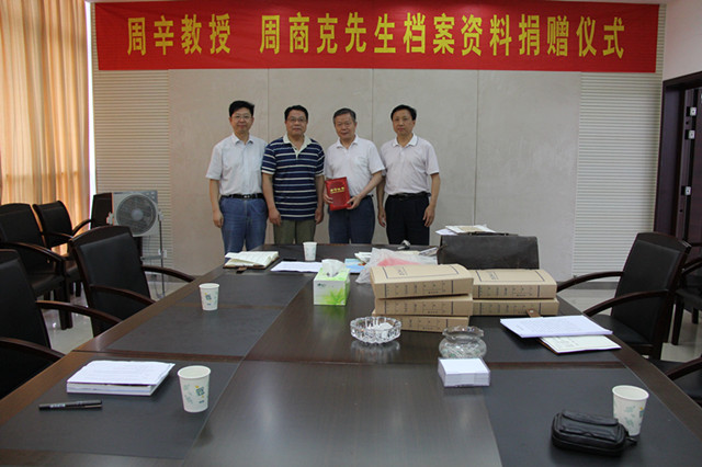 6月17日上午,“周辛教授、周商克先生档案资料捐赠仪式”在档案馆会议室举行。捐赠仪式由档案馆馆长王峰主持,副校长李琳琦教授出席并讲话,参加仪式的还有离退休工作处处长方百盈、档案馆工作人员等。