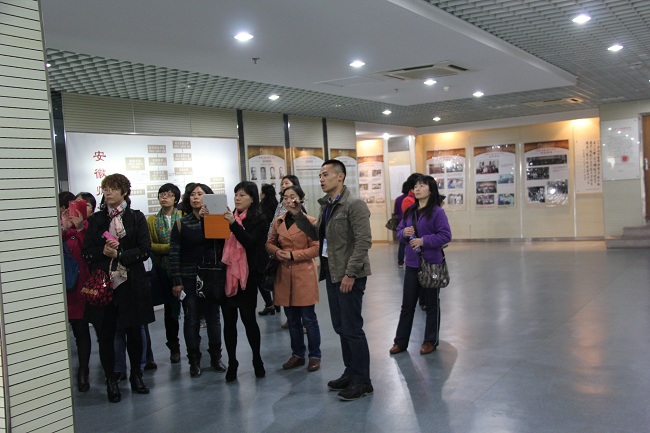 (校史馆 方乙)11月17日下午,我校外国语学院2014级国培班近八十名学员在学院团委书记孙彦的陪同下,参观了校史馆,回顾了安徽师范大学建校至今八十六年的风雨历程。