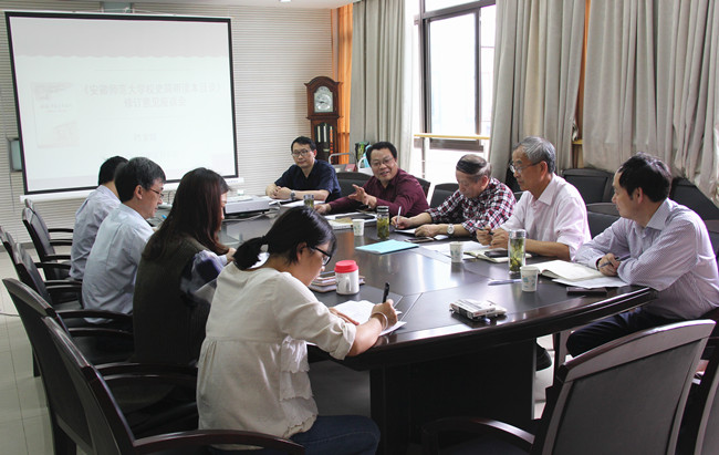 据悉,去年,学校启动了《安徽师范大学校史简明读本》编研工作。为发挥校史简明读本的资教育人的重要功能,学校成立了校史简明读本编研工作小组,并制定了校史简明读本出版计划。校史简明读本编研工作组成员经过近一年的努力,编印出《安徽师范大学校史简明读本》(讨论稿)。参会人员充分肯定了校史简明读本编写工作,对其最终定稿、出版表示期待。