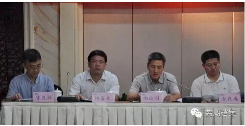 2016年8月10日下午,芜湖市档案学会第八次会员代表大会在芜湖市档案局召开,市档案局(馆)党组书记、局(馆)长夏冰馨到会并讲话,民政局杨富先应邀出席会议,我馆馆长陈孔祥参加了会议。
