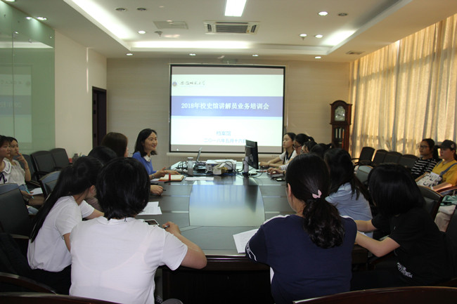 本网讯(档案馆 侯彤)2018年5月16日下午,档案馆在档案馆会议室召开建校90周年校庆志愿者、校史馆讲解员培训会,校史馆全体志愿者和讲解员参加会议。培训会由档案馆馆员、校史馆讲解指导老师侯彤主持。