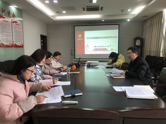 2月21日下午,档案馆党支部在档案馆会议室召开2021年度组织生活会,并开展民主评议党员工作。会议由党支部书记徐成进主持,全体党员参加会议。