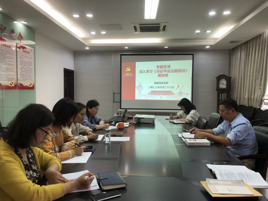 9月28日下午,档案馆党支部书记徐成进以“读懂用好《习近平谈治国理政》第四卷”为题给支部全体党员上了一堂生动的专题党课,支部成员联系个人学习成果和工作实际,从不同角度进行了交流讨论。